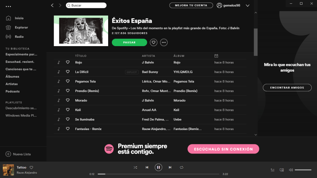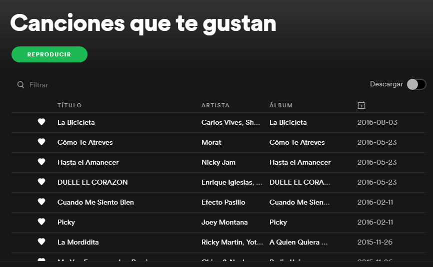 Ademas Spotify nos permite almacenar y descargar canciones que hemos indicado que nos han gustado y nos la almacenara en Canciones que te gustan